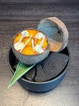 Ролл с хрустящей креветкой, авокадо, свежим манго, попкорном из риса и соусом ахи амарилло