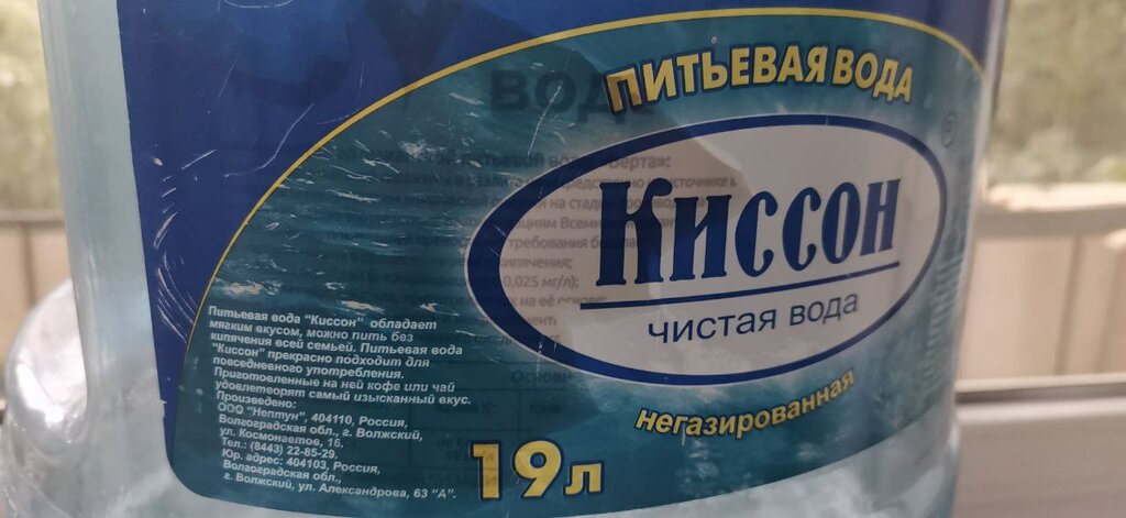 Начну с того, что воду привезли на следующий день, но на этом все хорошее заканчивается. На сайте компании kisson34.ru есть раздел "о воде" в нём вывешены санитарно-эпидемиологические заключения, что она соответствует санпинам,,,,,,,, и прочее бла бла, но нет самого главного - состава воды!!!! Пока не купишь не узнаешь, что эта вода просто опасна для внутреннего употребления человеком! В ней содержится очень очень вредный элемент - фторид, который является отходом алюминиевого производства. Последствия от его попадания в организм человека (со вренем он накапливается) могут быть не хорошие - болезнь Альцгеймера, рак молочной железы и не только. Люди!Будьте внимательны при покупке воды!! Сейчас эту дрянь добавляют не только в большие, но и в маленькие бутылки. Фтор, фторид или фторид-ион - это всё производные одной и той же отравы! А сами бутыли настолько изношенные и убитые, что сложилось впечатление как будто их на свалке собирают.