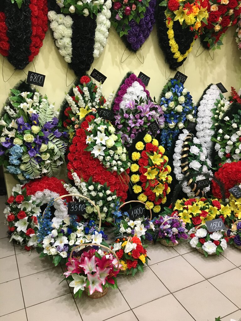 Ритуальный венок изготовлен из искусственных цветов.