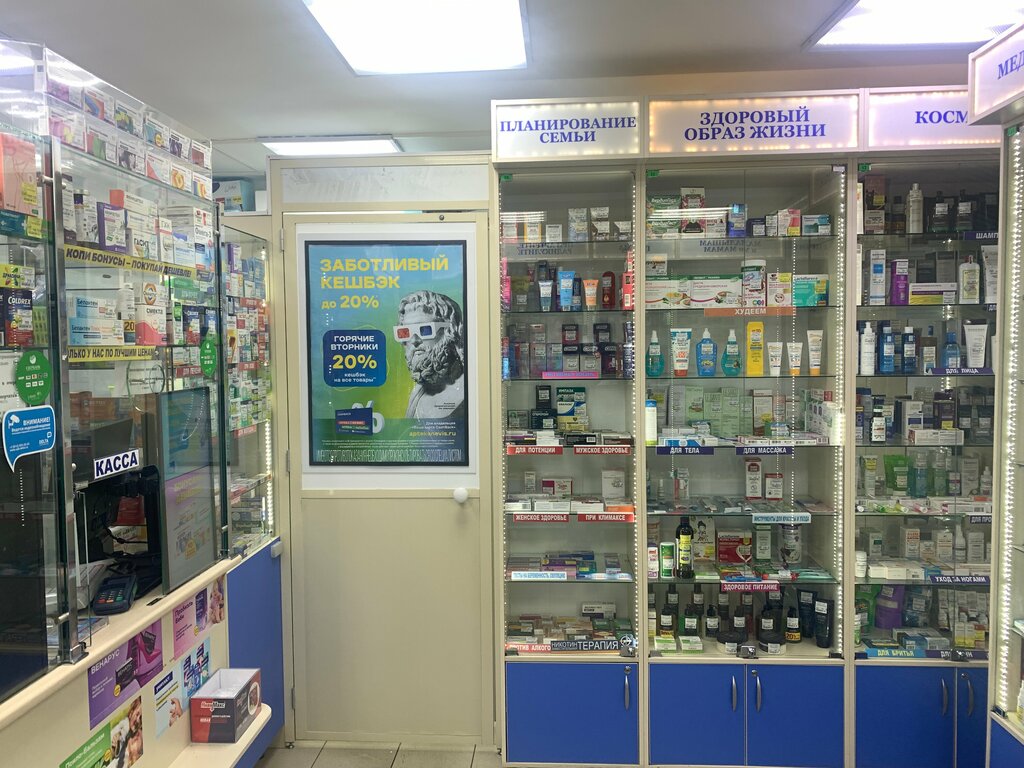 Хороший ассортимент, квалифицированный и доброжелательный персонал. Сеть интегрирована в приложения, есть бонусы и предзаказ. В помещении чисто, но тесно -- 3-4 человека и начинаем мешать друг другу.
