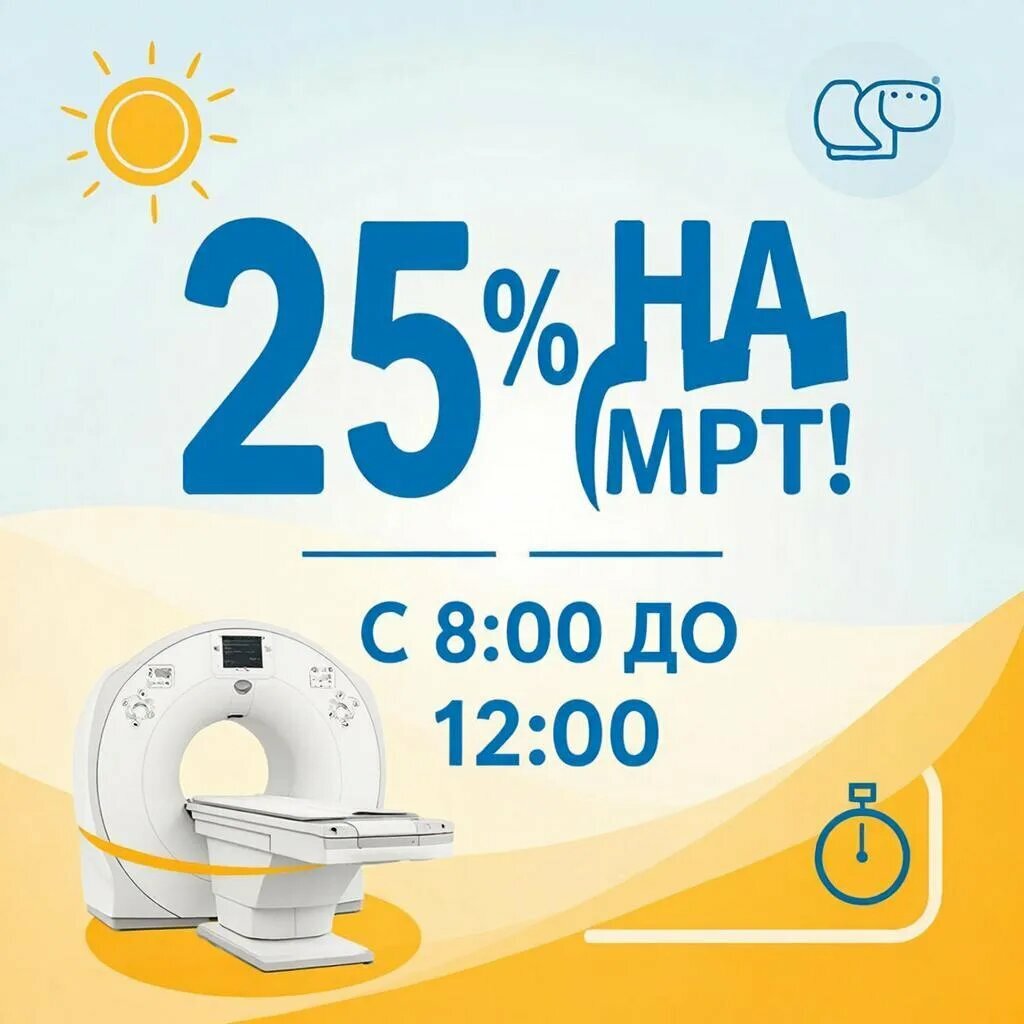 Ночная скидка 25% на МРТ и КТ! С 2:00 ночи до 6:00 утра — самое время позаботиться о своём здоровье с выгодой! В этот период действует скид...