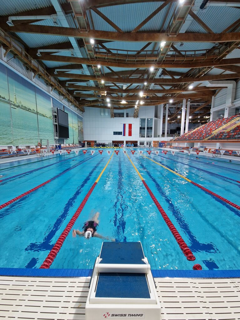 Шикарный спорткомплекс для пловцов всех мастей! Приезжаем на коммерческие соревнования от своей спортшколы. Все на уровне! Трибуны и парковка вмещают огромное количество болельщиков. 2 бассейна -25 и 50м. Есть буфет (да, недешево, но когда голодный маленький спортсмен просит еды, то большое подспорье!) Есть фирменный магаз Mad Wave 🌊 Посещаем с удовольствием!