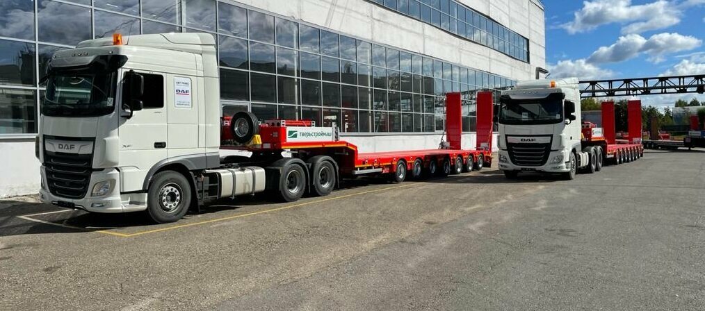 Собственный автопарк. Тяжеловесные и негабаритные грузоперевозки по России низкорамными телескопическими тралами. Автопарк 13 тяжеловесных тралов. 9 ед. грузоподъемностью до 50 тонн, 2 ед. грузоподъемностью до 100 тонн, 2 ед. 250 тн - модульный трал.