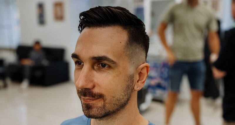 Идеальная мужская стрижка в Славных Парнях! Мастер подберет индивидуальный образ специально для вас. Для вас нет ограничений, а для нас - нет ничего невозможного. Мы предлагаем стрижку от 13 мм на висках с использованием ножниц и триммера. Приходите!