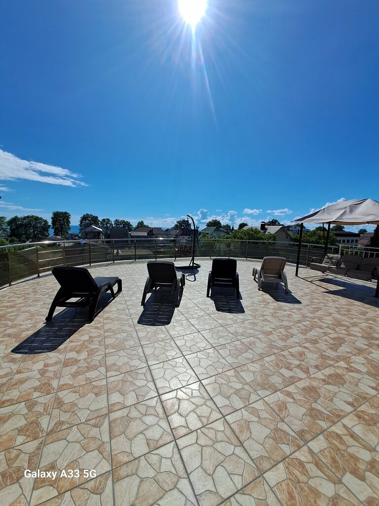 Понравилось расположение гостиницы- в центре всего что нужно для отдыха. Номера с гудящим и капающем кондером, грохочущим холодильником.вид на море, есть терассы для отдыха, есть кухня- столовая, места для парковки. Доска для глажания белья ходит ходуном как и розетка. Калитка не закрывается, что немного напрягало, может зайти кто угодно.Да,Просьба к владельцам- поговорите с хозявами соседней гостиницы, чтоб объяснили отдыхающим, как себя вести- пару дней назад орали пьяные до ночи, не сомкнули глаз- а ведь вести машину с ночи домой.!!! А так- отдохнули у вас нормально.