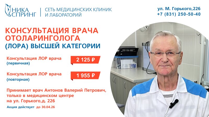 Акция! Консультация ЛОР врача первичная (Антонов В.П. МЦ Горкького 226)