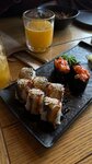Интерьер и атмосфера - приятного заведения, где можно встретиться с друзьями и провести время с семьей. В заведении два зала, один побольше, другой чуть более камерный. Меню понятное, картинки блюд соответствуют действительной подаче. Роллы и рис для них - супер! Лимонады тоже однозначно рекомендую. По адекватным ценам натуральный приятный вкус С удовольствием приду снова