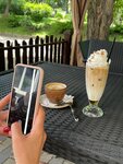 Искали хорошее кафе не в курортной зоне и не ошиблись с выбором. Сидели на веранде, немного шумно от машин с дороги,но особо приятная музыка и ветерок все компенсировали. Кому хочется прохлады и тишины,то можно посидеть на первом этаже. Брали пиццу, салат Цезарь, теплый салат, десерты и напитки. Все принесли очень быстро. Вкусная еда, хорошая подача и вежливый персонал - это то, ради чего мы придем сюда ещё раз обязательно.