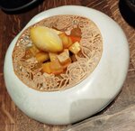Были с детьми в июле 2025 года. Пришли на ужин. Всё очень понравилось: блюда интересно оформлены, вкусно. В заведении приятная атмосфера. Официант забыл про одно заказанное блюдо, и ,честно сказать, оно уже было лишним. Так в связи с этим предложим нам десерт в качестве комплимента. Я попросила принести что-то необычное, хотя там все десерты с интригой :). Принесли два десерта - они на фото. Было очень приятно. Для сравнения в Москве заказали ребёнку десерт в одном приличном заведении почти в центре столицы с простым названием: картошка. Ребёнку принесли лоток и ложку: карточку нужно откопать в этой съедобной земле. Он накопал 4 штуки, подошла официантка и сказала, что каждая картошка- это одна порция. То есть он уже 4 штуки накопал :((, сколько всего в лотке было сказать не могу, лоток быстро унесли. Пирожное вкусное, пришлось всем съесть. Но осадочек остался.