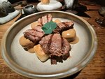 Ресторан с очень вкусной авторской кухней! Понравились все блюда! Шефу и официантам спасибо! Заказывал: - Тартар из говядины на картофельных листьях (интересная подача и отлично приготовленное мясо, очень вкусно). - Салат со страчателлой, инжиром и цитрусовой заправкой (съел с огромным удовольствием). - Баранина томленая с запеченным баклажаном и соусом из козьего сыра (отличное мясо!) - Фисташковый фондан с малиновым сорбетом (первый раз пробую такую вариацию фондана - супер!) Заходили ещё раз - всё вкусно! Заказывали: - Мини-брускетта с пряной говядиной, муссом из копченого сыра и малосольным огурцом. - Хрустящий баклажан с томлёной уткой и трюфельным кремом. - Филе говядины (medium) с розовой и муссом из пармезана. - Филе говядины с жареным хинкалом и соусом из грибов на кефире. - Сибас с огня с сезонными овощами и копченой рикоттой.