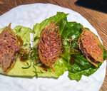 Ну к самому ресторану и обслуживанию вопросов нет, присоединяюсь ко всем хвалебным отзывам! Очень вкусно) Поэтому плюсы писать не буду и так понятно, хочу добавить ложку дегтя, но это ни как не повлияет на положительную оценку 🙂. 1. Если вы не знаете где находится ресторан- фиг найдете. Малюсинькая надпись на стене к тому же другого ресторана 2. Меню таким мелким шрифтом, что хочется попросить лупу! А мы люди возрастные, т.е. проблемы со зрением 😄 3. Официантка предложила выбрать блюда по картинкам в интернете, QR code напечатан на меню. Это всё прекрасно, только ничего, что интернет в Махачкале чёрте как работает 🤣 Но всё равно всё было отлично, мы очень смеялись над этими минусами😄