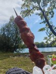 Очень вкусные шашлыки, брали с собой на пляж, я лично брала из шеи, сала не сильно много, ровные кусочки не сильно большие ни хрящика ничего такого, нам от души лука еще маринованого насыпали, тоже кстати хороший, упаковали в удобную полукоробочку типа картоного подноса, что очень удобно! Хочу еще теперь (сначала говорите мангальщику что будете потом на кассе, нам быстро приготрвили)