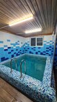 Баня для тех кто любит +100°. Пар более сухой. В парилке на полу плитка, так что тапочки рекомендую. Если их нет, то можно купить одноразовые там же. Есть небольшой бассейн.
