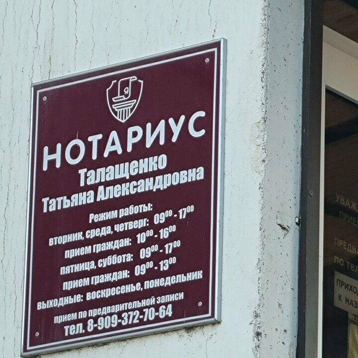 Нотариус Талащенко Т. А.