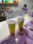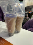 Не, ну мне все понравилось. Вообще, каждый стакан чая с тапиокой (теми самыми шариками похожими на желе) стоит 390 руб. Я брала молочный со вкусом Личи, и это было очень вкусно. Подруга взяла с голубикой, кажется. Мне меньше понравилось чем моё. Делали напиток довольно быстро, к этому претензий точно нет. Стакан довольно большой, не помню точный размер, но пили долго. Стакан очень качественный, особенно крышка, с самыми разными дырками, каждый может пить так, как хочет. Трубочку выдают, так что шарики доставать с донышка удобно. Около самого бара чтобы посидеть имеется только один или два стульчика. Но можно подняться на верх, на второй этаж фудкорта, там есть много свободных, насколько мы поняли, стульев, там можно с комфортом посидеть за столиком. Кстати, добавить в напиток дополнительный сироп - стоит 60 руб. В целом, я довольна.