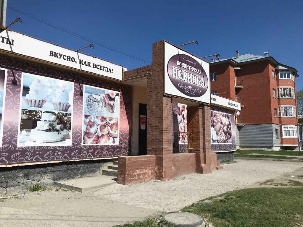 Здравствуйте! Кондитерская Новинка мне нравится! Выпечка свежая и вкусная! Всегда есть тесто в продаже. Можно просто посидеть за столиком с кофе и съесть пирожное! Ещё бы интерьер был современный,было бы супер! Обслуживание вежливое и девушки общительные!