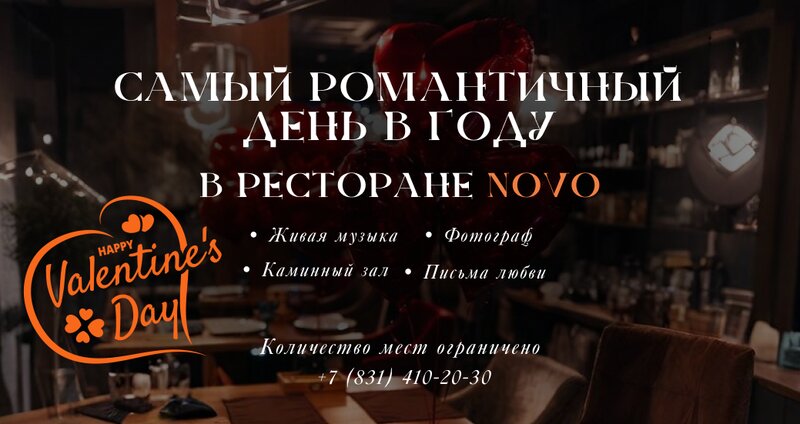💖 Самый романтичный день в году — в ресторане NOVO! 💖 14 февраля приглашаем вас провести вечер в атмосфере любви, уюта и изысканных эмоци...