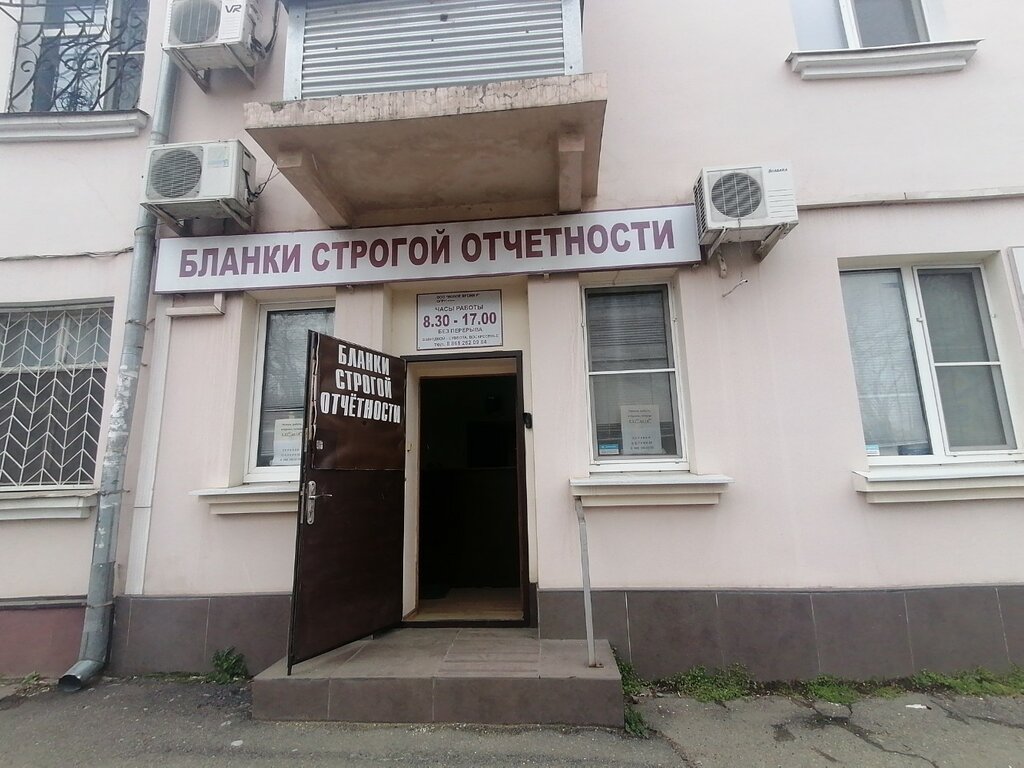На магазинчике написана вывеска " Бланки строгой отчетности". Через дорогу от Центра занятости.
