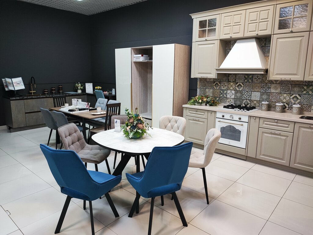 Проектируют кухни и делают их на фабрике "Кухонный двор". Мне понравилась их выставка образцов. Всё рассказали, показали, посоветовали удобную конфигурацию.