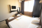 Отличный отель!!! Белоснежное белье, махровые белоснежные полотенца! Ежедневная уборка номера, бесплатная парковка. Два бассейна, бар, игровая зона. В номере есть чайник, фен, сплит система, телевизор, холодильник. Шикарный балкон со столиком и стульями. Вежливый персонал.До моря идти 10 мин. Нам все очень понравилось, обязательно вернемся!!