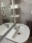 Был в этой гостинице в июне. Впечатления остались не самые лучшие. Номер, предоставленный мне изначально, не имел держателей для полотенец и туалетной бумаги, сломан настенный фен, над ним были засохшие сопли. После похода на ресепшн мне был предоставлен другой номер, как сказали это единственный вариант остался, вид этого номера на фото. Уборка номеров только после того как напомнишь два раза, мусор не выносился, приходтлось выставлять его в коридор. Мыло, шапунь и гель для душа не пополняли. За туалетной бумагой ходил на ресепшн. По поводу завтрака, из съедобного был только огурец. Яишница имела неприятный вид и запах, блины резиновые. Кружки, такое впечатление, не мытые, с какими-то разводами.