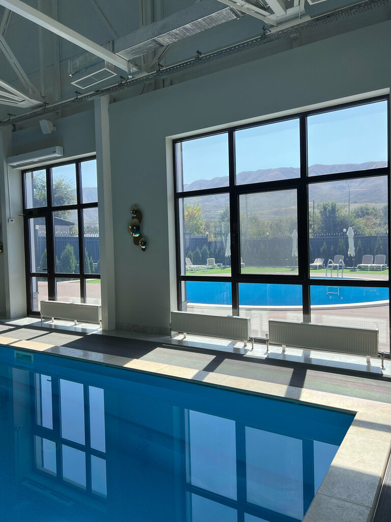 My friends, hello everyone! I decided to write my next review about this institution, as soon as I got my hands on it). The Nyala complex is located in the Zhetysu region, in the small, quiet single-industry town of Tekeli, near Taldykorgan. The complex itself consists of 3 parts. 1- restaurant 2-hotel 3-swimming pool. I'm going to write about the pool and the rest. I visited this complex in early September 2024, probably remember when it gets colder, and you haven't had time to say goodbye to summer yet). So on one of these days off, I suddenly wanted to go out into nature, get some fresh air and just take a walk. In Taldykorgan, there are no places and weekend routes near or on the outskirts of the city like Almaty residents, so the choice fell onTekeli. I decided spontaneously and got ready quickly, my wife also agreed to come with me). First, I went to the city, rode a little, went up to the observation deck and walked around. Then I said to my wife, let's go to a place that's not far away, let's go for a swim in the pool. She still had no idea what kind of place it was or where I was taking her)). I quickly got to the place, took out bags with things and went inside). I paid the entrance fee at the reception. Further through the corridor of the hotel you get directly into the pool. Everything is standard 25x12m Locker room, separate shower room for men and women. The water in the pool is warm, the windows are stained glass, and the view and panorama are just great, which is an advantage of this complex. Now the assessment of the complex itself is purely my personal and subjective. -staff -5 -service - 5 -swimming pool -5 -interior -4 (there are some drawbacks from a professional point of view) but I don't want to find fault with it for such a single-industry town, it's better than nothing at all) -food -5 The prices for food in the restaurant are quite affordable and adequate. Entrance to the pool for one person 10,000 tenge. For residents of Tekeli and Taldykorgan, this price is a bit too much. Therefore, even weekends here are almost empty, there are few people. But the bass is completely at your disposal, I swam a lot that day from the bottom of my heart, you can say) The service in the rest is good, the hot stuff is carried out in 15-20 minutes. The food is very tasty, it is noticeable that the chefs and the kitchen staff are professional in their field. I uploaded a few short videos from this complex, watch, admire and be sure to come take a break from the hustle and bustle of the city in silence without fuss)