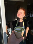 Наконец-то в доме открылась кофейня. Утром взял эспрессо, вечером маття. Бариста на позитиве. Кофе + настроение = любовь.