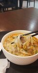 Классический тайский ароматный суп с морепродуктами, с добавлением шампиньонов, томатов, лемонграсса, листьев кафирного лайма и зелени. Подается с рисом