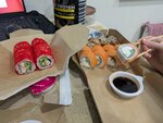 Одни из лучших роллов, которые пробовал. А перепробовал я не мало) По размеру большие и много начинки, рис хороший, роллы не разваливаются. Брали 24 штуки на двоих, объелись. Из минусов могу отметить сайт и приложение. Как только столкнётесь с ними, поймёте о чём я говорю. Конкурентам явно проигрывают в этом аспекте. Но поскольку главное - это всё-таки вкус, то оценку снижать за это не буду. И, кстати, по наблюдениям, обычно чем хуже приложение, тем вкуснее роллы и, наоборот.