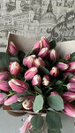 На 8 марта муж заказал два букета. Первый букет из 33 тюльпанов, тюльпаны красивые большие на этом всё плюсы заканчиваются, привез домой и уже к вечеру бутоны начали увядать, на следующий день весь букет повесил бутоны, даже не раскрываясь и поехал в мусорное ведро. Сразу скажу букет из магазина приехал домой в машине, нигде не мерз и т.д цветы были подрезаны и прочее. Второй букет был из гиацинтов с ним всё было отлично, стоял долго, цветы раскрылись.