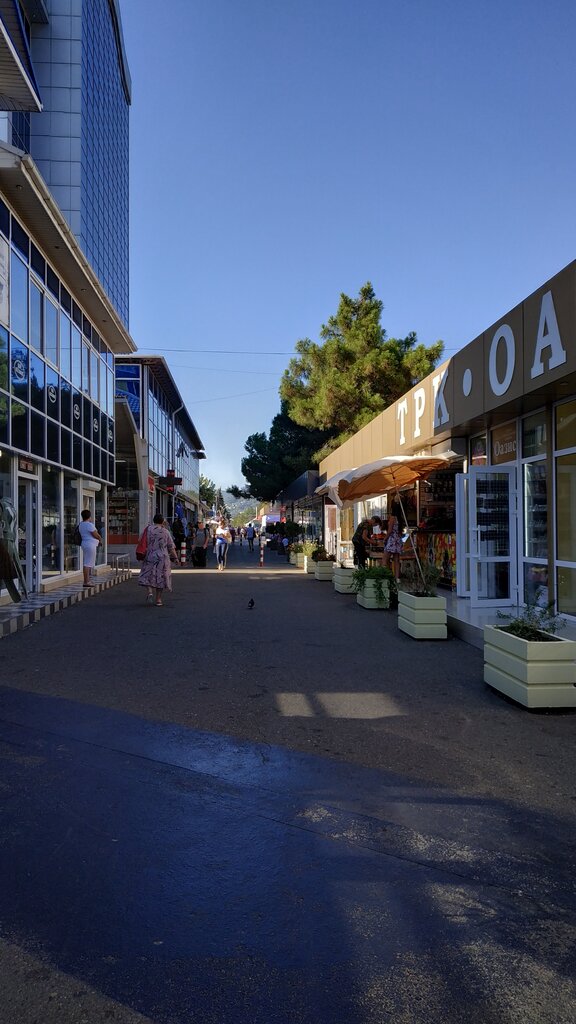 Неплохой торговый центр , который расположен на территории Адлер Курорт . Много маленьких магазинов с сувенирами , продукцией товаров из Краснодара . Здесь можно купить краснодарский чай , свежие сыры , пряности , рыбу барабульку , вяленую и копченую , суджук , то есть те продукты , что в Москве вы не купите по таким ценам и такого качества . Если вы будете отдыхать в Адлер курорте советую вам туда сходить . Он расположен в 5 минутах ходьбы от корпуса Коралл.