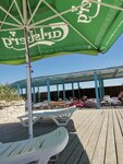 Если погода штормит ваше море и настроение, рекомендуем посетить бассейн азов. Платишь за вход и весь день можно там находиться. Бассейн достаточных размеров. Бесплатно можно взять круг, матрас или мяч для детей. Народу днем не много!!! На месте можно заказать пиццу, в баре есть пиво, вода. Есть также детский бассейн. Зонты, лежаки, душевая, туалет.
