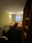 Начнем с хорошего: + комфортно по стоимости + туалет, душ в номере + в стоимость включен завтрак в трех вариациях. Вкусный и сытный. Но, к сожалению, количество минусов перевешивает. Итак, отель находится почти в полутра километров от вокзала и центра, ни один транспорт туда не ходит, да и на машине будет подъехать проблемно: переезды через ж/д пути находятся очень далеко и остается один путь - пешком. Идти же придется по убитой в ноль дороге с ямами и лужами, никакого тротуара нет, спасибо, что хоть есть освещение. Приходим в отель. Нас встречает на первый взгляд приветливая женщина. Поздоровалась, сняла сканы паспортов и все - никакого договора, никаких объяснений, ни слова не сказала ни про что либо - просто дала ключи и все: думай, что здесь есть, а чего нет, сам. Вообще никаких объяснений. До ночи эта же особа своим громким голосом орала и с кем-то весело болтала так громко, что перекрикивала даже шумные компании гостей. Время уже было за 11 вечера и что люди могут спать и что это прямое нарушение закона о тишине никого не волновало. Я бывал во многих отелях, невоспитанные гости, бывало, шумели, но чтоб это делал АДМИНИСТРАТОР - человек, который должен предотвращать подобное, а не способствовать - такое у меня впервые. Комната тоже вызывает вопросы - ремонт старый, пол скрипит, кровати, так сказать, видавшие виды. Но все это можно простить за адекватную стоимость, но чего нельзя простить - так это подобного отношения со стороны персонала. Объясни, что где и как, веди себя спокойно - все было бы хорошо, но желания останавливаться здесь впредь нет никакого.