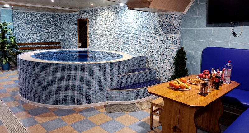 Минимально время бронирования-2часа Внимание!Бронирование по предоплате. Номер с бассейном-джакузи и финской парной. На 6 человек (+ 2 за доп.плату) Площадь номера - 80 кв.м Размер Бассейна - 2х2 м круглой формы с сиденьями Глубина бассейна - 1 ...