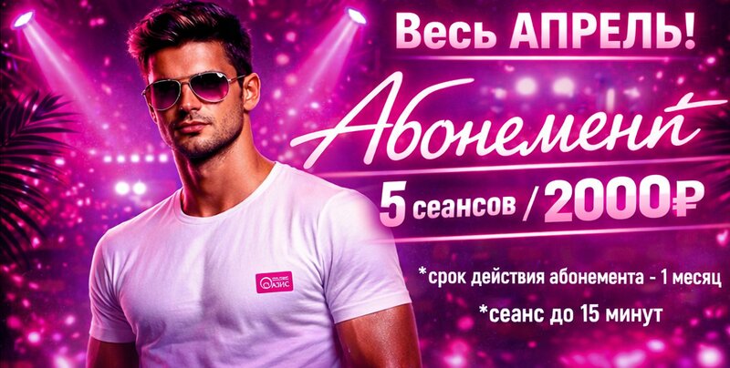 🔥 Весь АПРЕЛЬ! Спецпредложение! 🔥 ✨ Абонемент - 5 сеансов за 2000₽ ✨ ▫️ *срок действия абонемента - 1 месяц ▫️ *сеанс до 15 минут 📞 Вс...