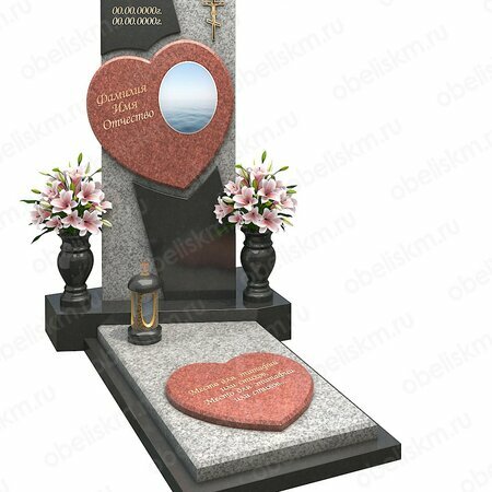 Заказать в Москве комбинированный памятник из нескольких видов гранита OM4003-2. Собственное производство, гарантия, скидки. Доставка и установка на кладбище. Выезд менеджера. Звоните +7 (495) 664-97-28