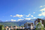 Удачное расположение — на повышенном месте рядом со станциями подъемников Олимпия 1100 м и Заповедный Лес 1100 м. Считать все природные и олимпийские достопримечательности не хватит пальцев рук и ног. Приведу основные с убыванием значимости. Это Главный Кавказский хребет с самыми западными трехтысячниками во главе с Чугушем(3238 м). На вершине Псехако объекты Газпрома с Дополнительной Горной Олимпийской деревней(«Слобода»). В другую сторону снежники по направлению к озеру Кардывач. По левому берегу от Мзымты Турьи горы. Рядом склон Аибги с Горки-городом Верхним(старое красивое название), лыжными трассами, бобслеем, «цирками» и все не перечесть. Надо садиться на самокат, электричку, самолет, вертолет. В общем приехать сюда, посмотреть и подняться еще выше. Там еще грандиозней.