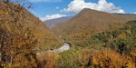 On the way to the holy spring there is an observation deck with a magnificent view of the river gorge, surrounded by high mountain ranges. You can take beautiful photos here.