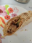 Шаурма большая, вкусная. Радует качество мяса на углях. За размер уважение. Было бы чуть больше соуса, и вообще идеально. Рекомендую