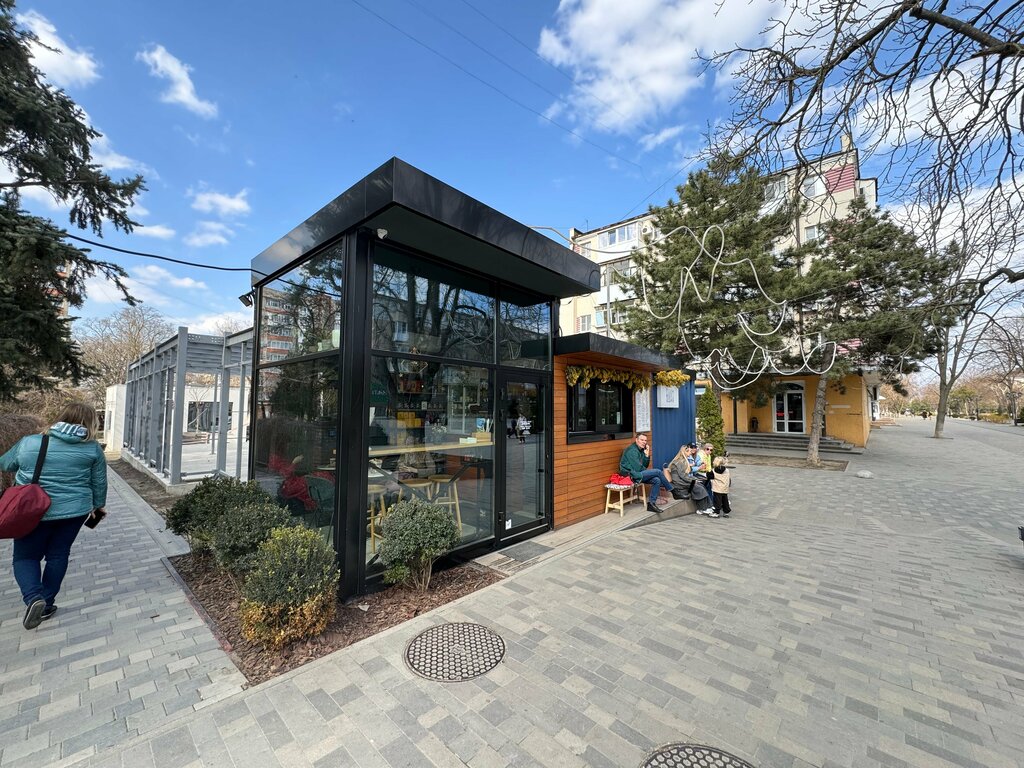 Уже ставшее легендарным место. Каждый раз, приезжая в Азов, обязательно заскакиваем за волшебным кофаном. Стильно и уютно выглядит, и заодно очень стратегически расположено — самое то заглянуть после прогулки по Петровскому бульвару или посещения музея. Радует, что место постепенно расширяется, и хорошего дизайна вместе с напитками становится все больше