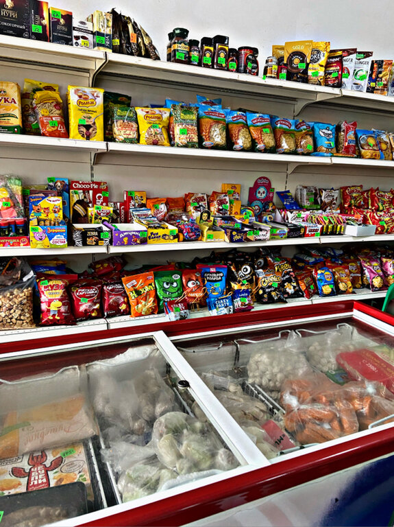 Продуктовый магазин, вроде все есть, но только наличные, так как интернета нет терминала оплаты картой тоже нет, возможен перевод, но интернет здесь отсутствует.