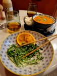 Очень вкусная самодельная лапша удон с овощами! И мисо-суп приятный. А ещё большой выбор импортных газировок. Выбор блюд без мяса и рыбы очень маленький, но то что есть - всё вкусное! Еду несут быстро. Внутри всего три столика, жарковато, но очень чисто и уютно.