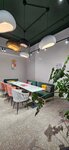 Уютное место! И вкусный кофе. Зал небольшой, 6 столов, за некоторыми можно и вдвоём сесть или больше, если нужно вместе, есть ещё пара мешком на втором ярусе и крошка-переговорная на двоих. Мне нравится сюда ходить работать, светло, на стенах кое-где роспись зелёными листьями, ооочень чисто, спокойная атмосфера. Ещё тут отмечают праздники иногда, мне не нужно, но кажется, должно быть мило и удобно.