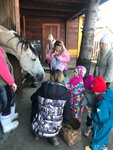 Организованной группой детей и родителей под предводительством воспитателей мы посетили конный дворик. Все ушли с положительными эмоциями и кучей впечатлений. У нас было и знакомство со всеми обитателями дворика, где впечатление произвёл пони-дед Д’Артатьян, приветствуя всех копытом, потом был небольшой цирковой номер от козы, покормив всех животных дети отправились в фотозону с кроликом Тучкой. Немного погревшись и перекусив вместе с животными😂началось знакомство с лошадьми, рассказ о каждом, кормление, затем был мк по уходу, каждый желающий расчесал гриву коню и в завершении было парно-семейное катание на конях. Мы ушли с положительными эмоциями, наобщались с животными, накормили их сладостями, накатались, сами погрелись и попили вкусный чай в тёплой беседке, ждём с нетерпением фотографий, а вам спасибо большое за гостеприимство, детских воспоминаний и обсуждений хватит на долго. Спасибо за подаренные эмоции❤️