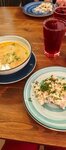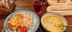 Зашли пообедать сразу по приезду, т.к. были рядом. Были только комплексные обеды - салат, первое и горячее на выбор из двух позиций. Еда простая, но довольно вкусная. Вежливое и быстрое обслуживание, но мы были одни. Единственное - это кафе сложно найти, если не знаешь.