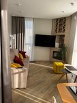 Прекрасные апартаменты. Отдыхали с детьми и собакой. Приехали вечером. На кухонном столе нас встречала большая ваза с фруктами. Приготовлены две 5 литровые бутылки с чистой водой . Для собаки лежали пеленки, полотенце и миски. Приятное постельное белье , удобные матрасы и подушки (для нас это очень важно ). Предусмотрено всё. Спасибо большое за такое внимание к своим гостям. В минуте от апартаментов уже вход в парк. На территории чисто и приятно. Есть футбольное после , детская площадка. У дома стоят урны с пакетиками для уборки за своими питомцами. Нам очень понравилось ☘️
