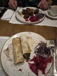 Вкусные блюда с красивой подачей. Порции большие и сытные. Обслуживание на высоте и выше всяческих похвал. Предупредительные и услужливые официанты. Приняли верхнюю одежду и принесли при уходе. Предоставили стульчик для дамской сумочки. Пересадили за более удобный и тихий столик. Самый восхитительный теплый салат из баклажан. Очень вкусный и насыщенный глинтвейн. Спасибо за все.