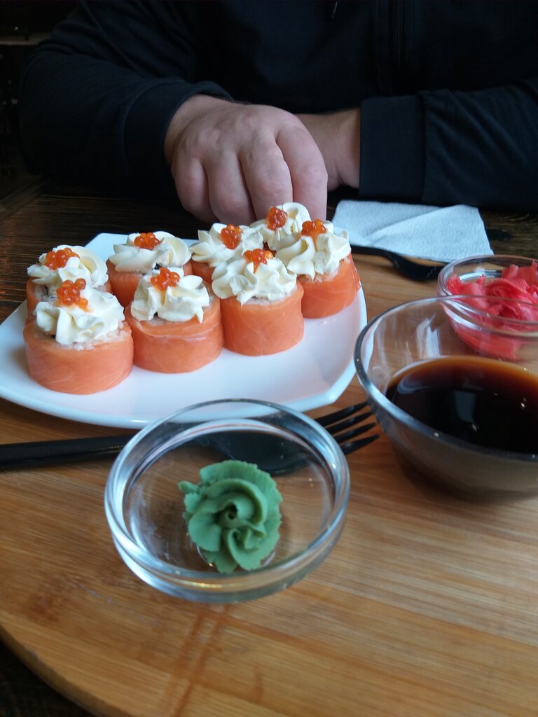 07.03.22 Брали сет ( микс ) Рис вкусный , консистенцыя плотная , Рыба свежая , соусы нежные , очень вкусные , Васаби , имбирь , соевый, свежие Цена хорошая , + скидка ,при самовывозе Брали на пробу , Теперь будем брать чаще . Спасибо за качество 😏.