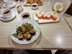 Были 11.01.26. Вкратце: Еда посредственная. Дорого. Не рекомендую. Еда: роллы откровенно слабоваты, не сказать, что совсем невкусно, но и вкусными я бы их тоже не назвал. Глясе отвратительный, набодяжили кофе(возможно, даже растворимый) с молоком, сверху насыпали взбитых сливок и выдают его за глясе. На претензию официанту: "А где, собственно, мороженое?", был дан ответ, что так и должно быть. Лапша якимоба, норм, но это просто овощи. Помещение: в зале ужасно воняло хлоркой, видимо, моют полы с хлоркой. В туалете в раковине нет горячей воды. Своих денег еда, определённо, не стоит. Желание повторно посетить данное заведение отсутствует.