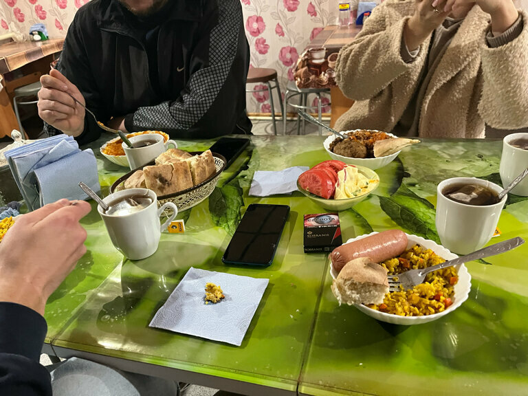Так понимаю, содержит семья, видно что стараются. Еда вкусная, домашняя, но достаточно дорого для подобного заведения Чистенько, столы-стулья принесены из дома или что-то подобное. Туалет и рукомойник на улице В целом, перекусить по дороге домой- неплохой вариант, не ждите супер-дизайна, да что уж, хоть какого то дизайна и низких цен, но повторюсь, приятные, добрые люди, видно, что стараются.